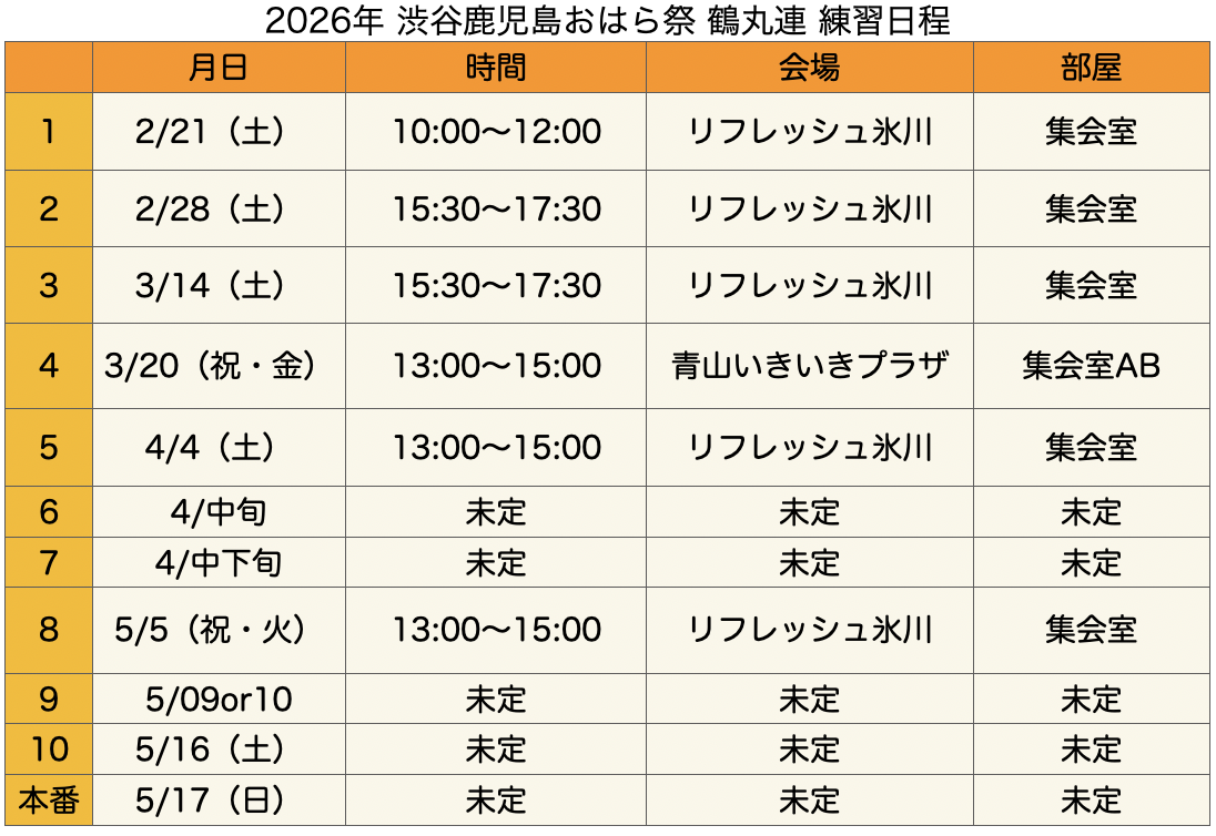 2026年 第29回渋谷・鹿児島おはら祭~練習日程